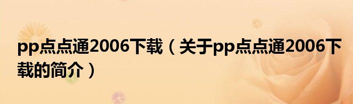 本文關于pp點點通2006下載的簡介就講解完畢,希望對大家有所幫助。