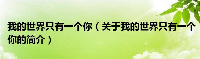 大家好,我的世界只有一個(gè)你,關(guān)于我的世界只有一個(gè)你的簡(jiǎn)介很多人還不知道,現(xiàn)在讓我們一起來看看吧!