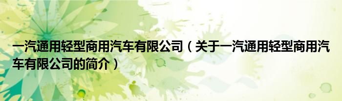 本文關于一汽通用輕型商用汽車有限公司的簡介就講解完畢,希望對大家有所幫助。