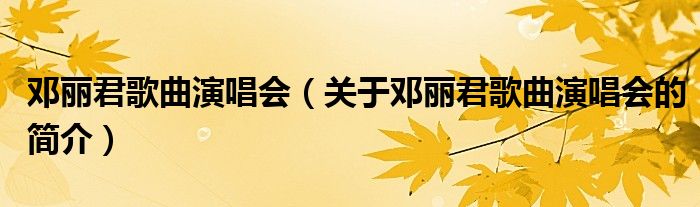 本文關于鄧麗君歌曲演唱會的簡介就講解完畢,希望對大家有所幫助。