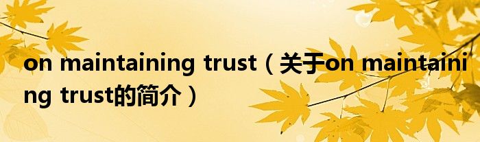 大家好,on maintaining trust,關于on maintaining trust的簡介很多人還不知道,現在讓我們一起來看看吧!