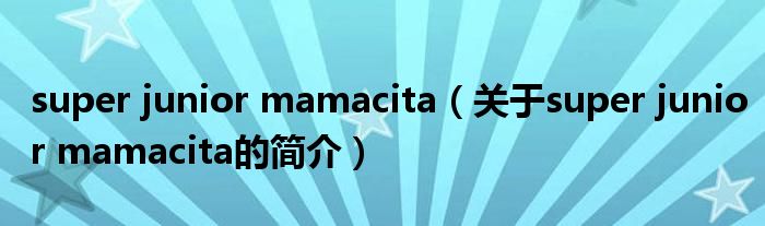 大家好,super junior mamacita,關于super junior mamacita的簡介很多人還不知道,現在讓我們一起來看看吧!