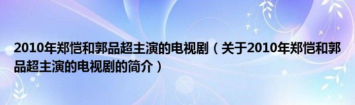 本文關(guān)于2010年鄭愷和郭品超主演的電視劇的簡介就講解完畢,希望對(duì)大家有所幫助。