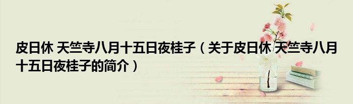 本文關于皮日休 天竺寺八月十五日夜桂子的簡介就講解完畢,希望對大家有所幫助。