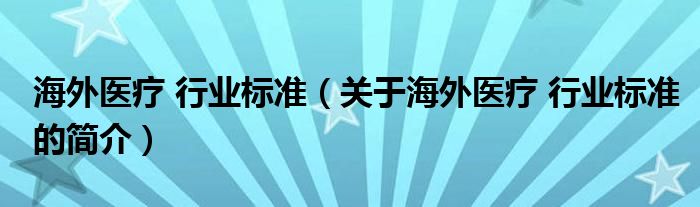 本文關于海外醫療 行業標準的簡介就講解完畢,希望對大家有所幫助。