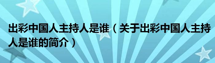 本文關(guān)于出彩中國人主持人是誰的簡(jiǎn)介就講解完畢,希望對(duì)大家有所幫助。