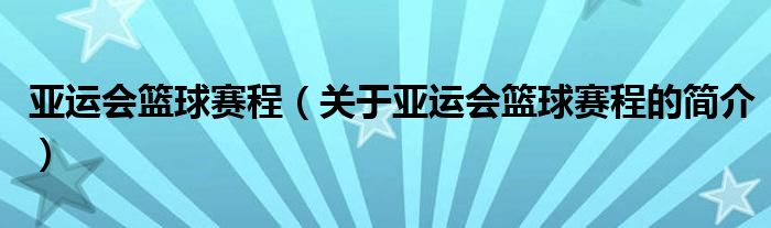 本文關于亞運會籃球賽程的簡介就講解完畢,希望對大家有所幫助。