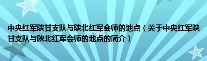本文關于中央紅軍陜甘支隊與陜北紅軍會師的地點的簡介就講解完畢,希望對大家有所幫助。