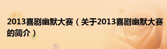 本文關于2013喜劇幽默大賽的簡介就講解完畢,希望對大家有所幫助。