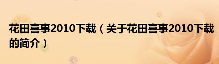 大家好,花田喜事2010下載,關(guān)于花田喜事2010下載的簡介很多人還不知道,現(xiàn)在讓我們一起來看看吧!