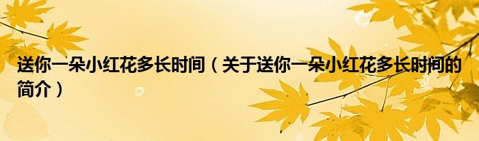 本文關于送你一朵小紅花多長時間的簡介就講解完畢,希望對大家有所幫助。