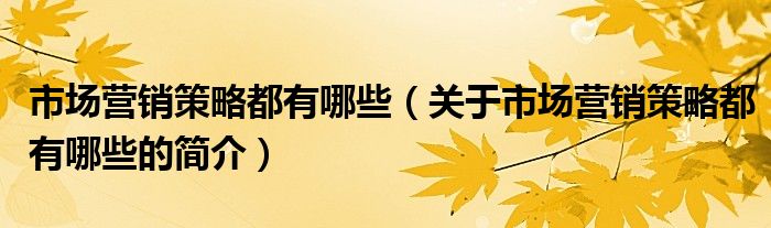 本文關于市場營銷策略都有哪些的簡介就講解完畢,希望對大家有所幫助。