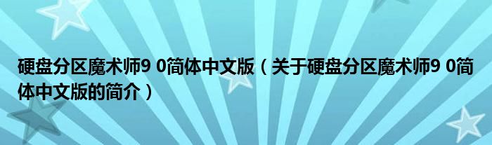 本文關于硬盤分區魔術師9 0簡體中文版的簡介就講解完畢,希望對大家有所幫助。