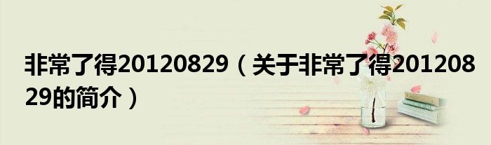 大家好,非常了得20120829,關于非常了得20120829的簡介很多人還不知道,現在讓我們一起來看看吧!