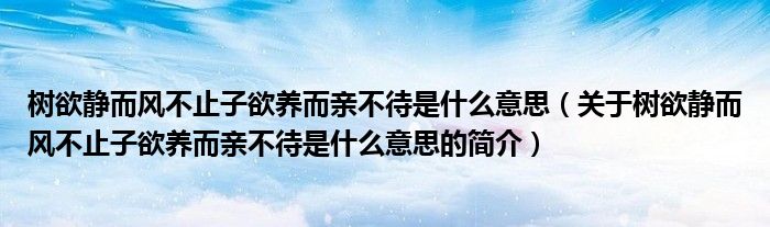 本文關于樹欲靜而風不止子欲養而親不待是什么意思的簡介就講解完畢,希望對大家有所幫助。