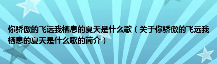 本文關于你驕傲的飛遠我棲息的夏天是什么歌的簡介就講解完畢,希望對大家有所幫助。