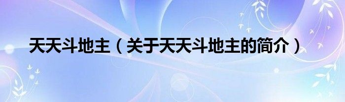 本文關于天天斗地主的簡介就講解完畢,希望對大家有所幫助。