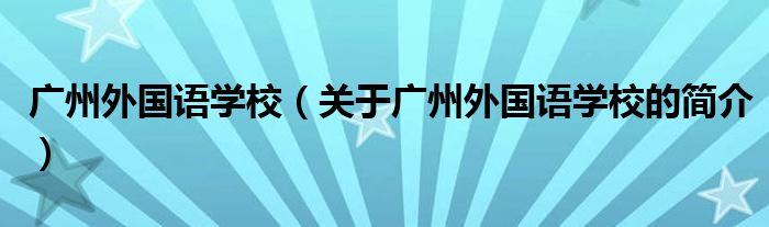 大家好,廣州外國語學校,關于廣州外國語學校的簡介很多人還不知道,現在讓我們一起來看看吧!