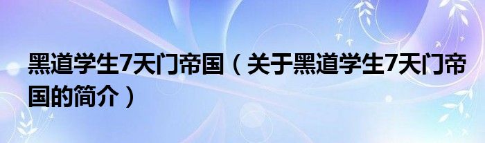 本文關于黑道學生7天門帝國的簡介就講解完畢,希望對大家有所幫助。