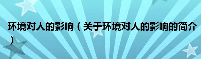 本文關于環境對人的影響的簡介就講解完畢,希望對大家有所幫助。