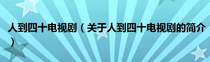 大家好,人到四十電視劇,關(guān)于人到四十電視劇的簡介很多人還不知道,現(xiàn)在讓我們一起來看看吧!