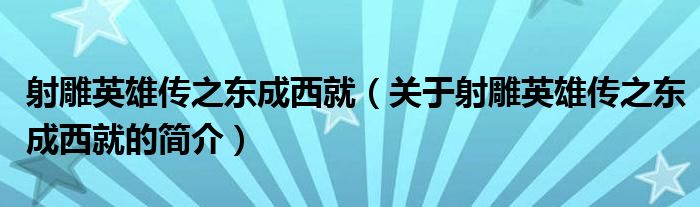 本文關于射雕英雄傳之東成西就的簡介就講解完畢,希望對大家有所幫助。