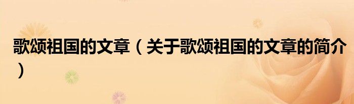 大家好,歌頌祖國的文章,關于歌頌祖國的文章的簡介很多人還不知道,現在讓我們一起來看看吧!