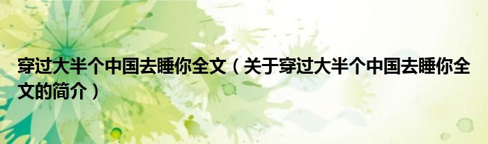 本文關于穿過大半個中國去睡你全文的簡介就講解完畢,希望對大家有所幫助。