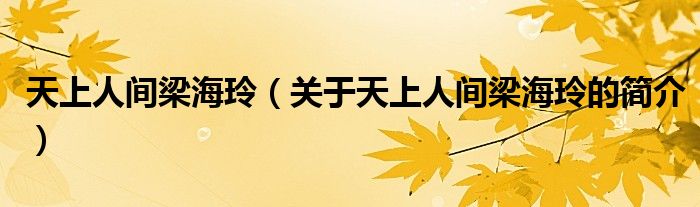本文關(guān)于天上人間梁海玲的簡介就講解完畢,希望對大家有所幫助。
