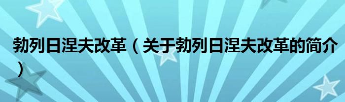 大家好,勃列日涅夫改革,關于勃列日涅夫改革的簡介很多人還不知道,現在讓我們一起來看看吧!