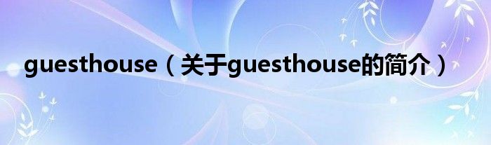 大家好,guesthouse,關(guān)于guesthouse的簡(jiǎn)介很多人還不知道,現(xiàn)在讓我們一起來看看吧!