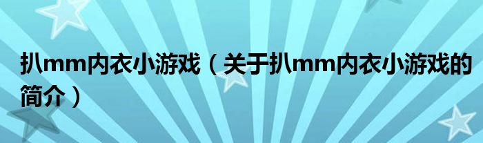 本文關于扒mm內衣小游戲的簡介就講解完畢,希望對大家有所幫助。
