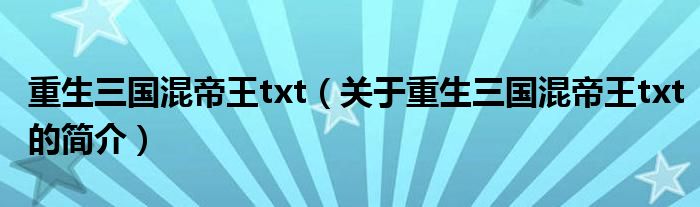 本文關于重生三國混帝王txt的簡介就講解完畢,希望對大家有所幫助。