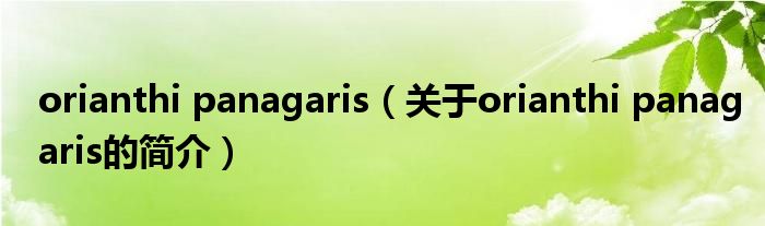 本文關(guān)于orianthi panagaris的簡介就講解完畢,希望對大家有所幫助。