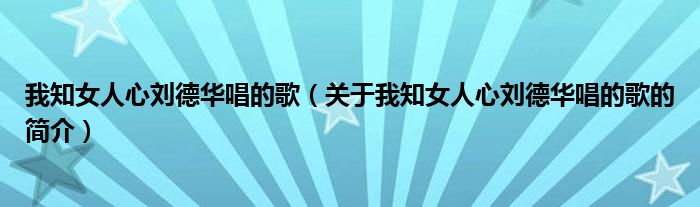 本文關于我知女人心劉德華唱的歌的簡介就講解完畢,希望對大家有所幫助。