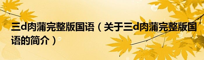 本文關于三d肉蒲完整版國語的簡介就講解完畢,希望對大家有所幫助。