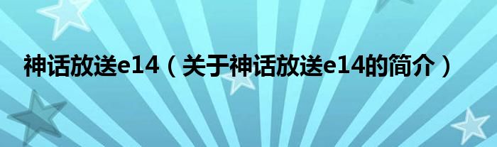 本文關(guān)于神話放送e14的簡介就講解完畢,希望對大家有所幫助。