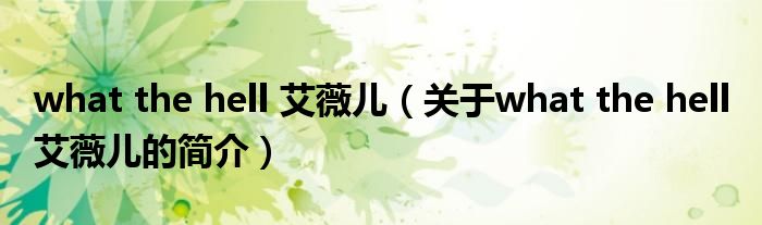大家好,what the hell 艾薇兒,關于what the hell 艾薇兒的簡介很多人還不知道,現在讓我們一起來看看吧!