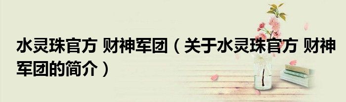 本文關(guān)于水靈珠官方 財(cái)神軍團(tuán)的簡(jiǎn)介就講解完畢,希望對(duì)大家有所幫助。