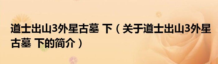 本文關(guān)于道士出山3外星古墓 下的簡介就講解完畢,希望對大家有所幫助。