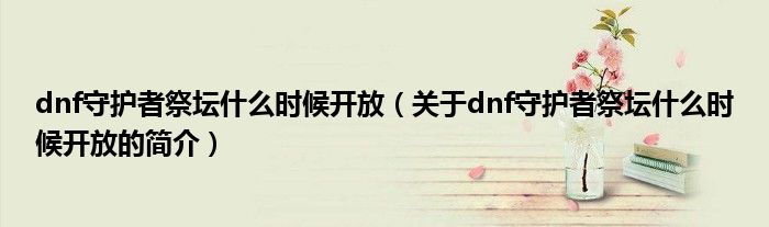 本文關于dnf守護者祭壇什么時候開放的簡介就講解完畢,希望對大家有所幫助。
