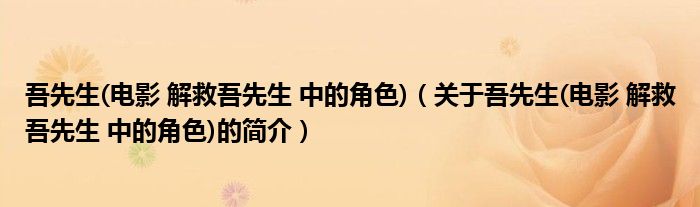 本文關于吾先生(電影 解救吾先生 中的角色)的簡介就講解完畢,希望對大家有所幫助。
