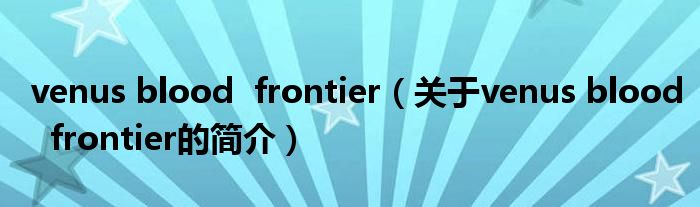 本文關于venus blood frontier的簡介就講解完畢,希望對大家有所幫助。