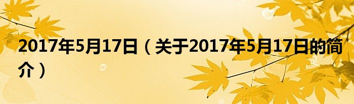 大家好,2017年5月17日,關于2017年5月17日的簡介很多人還不知道,現在讓我們一起來看看吧!
