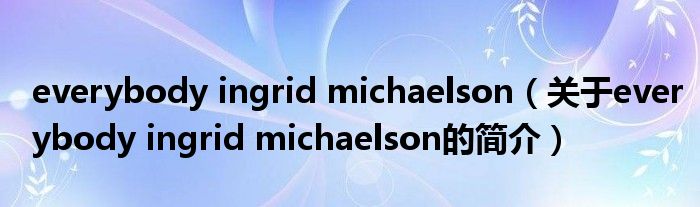 大家好,everybody ingrid michaelson,關于everybody ingrid michaelson的簡介很多人還不知道,現在讓我們一起來看看吧!