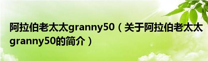 本文關于阿拉伯老太太granny50的簡介就講解完畢,希望對大家有所幫助。