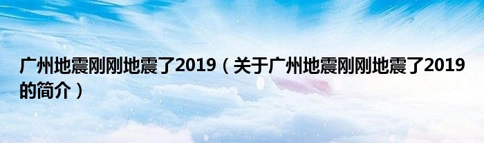 本文關于廣州地震剛剛地震了2019的簡介就講解完畢,希望對大家有所幫助。