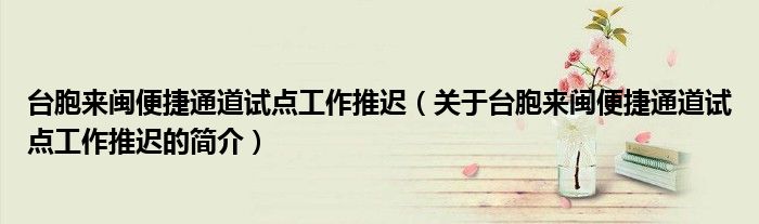 本文關于臺胞來閩便捷通道試點工作推遲的簡介就講解完畢,希望對大家有所幫助。