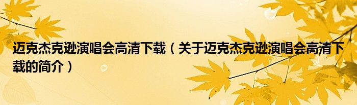 本文關于邁克杰克遜演唱會高清下載的簡介就講解完畢,希望對大家有所幫助。