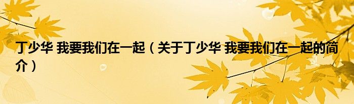 大家好,丁少華 我要我們在一起,關于丁少華 我要我們在一起的簡介很多人還不知道,現在讓我們一起來看看吧!